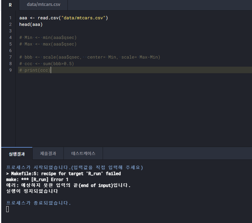 잘 되던 실행문에 주석처리를 하니 저런식으로 에러가 뜨네요 처음에 코딩 잘못한줄알고 식겁했는데 주의하세요!